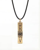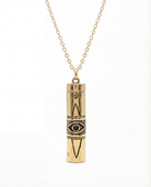 A cylindrical pendant finished with engraved symbols and a single black onyx eye set at its centre. The eye has long been worn as a symbol of protection and awareness, while black onyx is believed to ground energy, absorb negativity, and offer strength when things get a little loose or unpredictable.