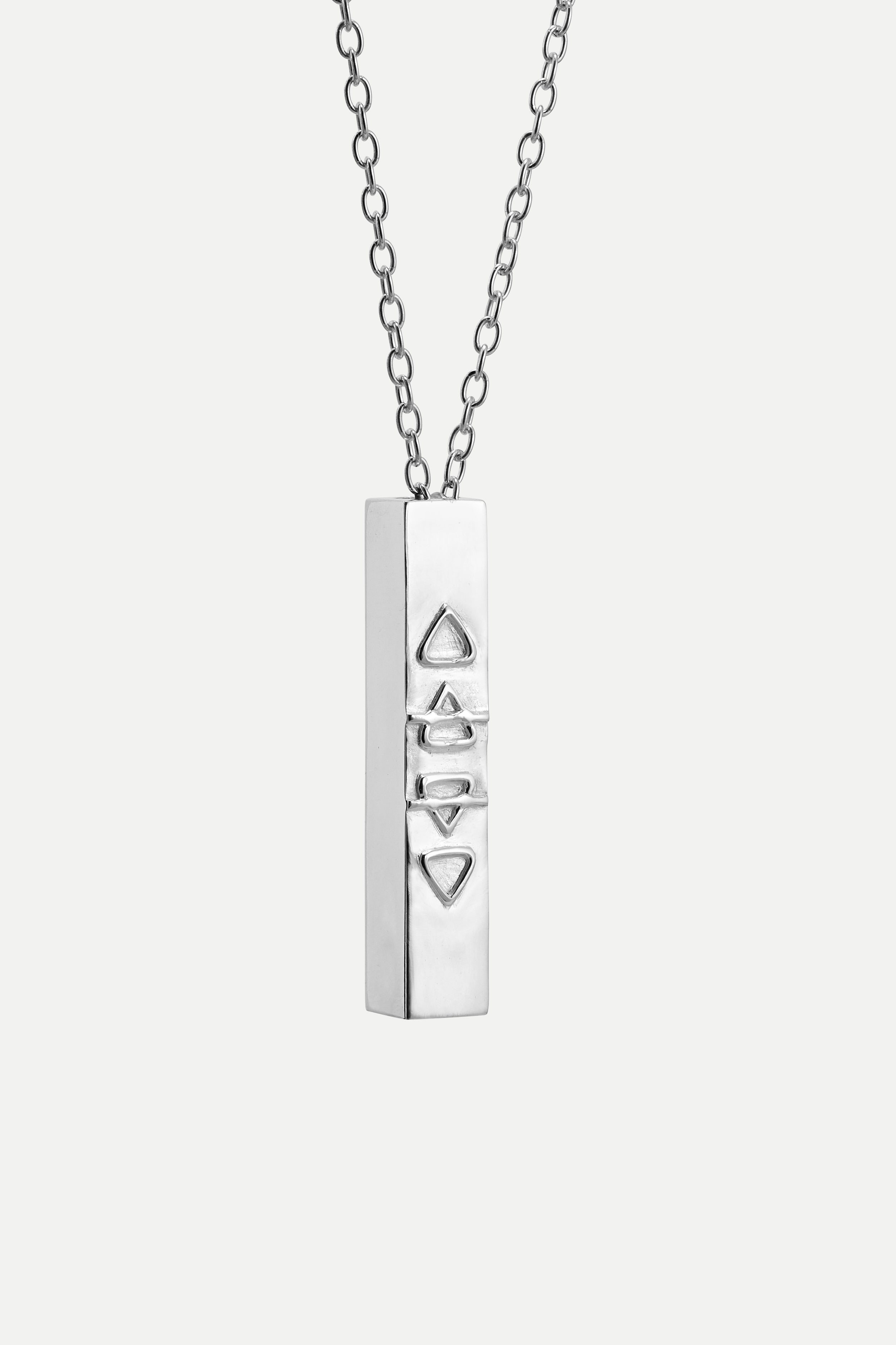 Introducing our unique and handcrafted necklace, designed to complete your necklace stack in a truly one-of-a-kind way. The rectangular pendant is crafted from brass and is silver plated.