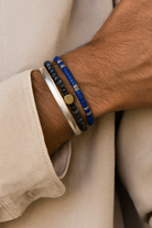 This handcrafted beaded bracelet features lapis beads paired with 925 sterling silver beads. Wear it solo or stacked for effortless style. The perfect accessory for villa parties, coastal vacations, festivals, or worn with your favorite watch in the city.