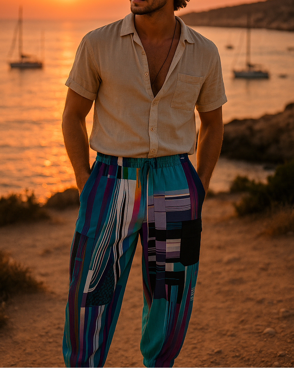 Super comfortable pants, with button and zip closure and ties inside if you want to make them tighter. Small elasticated section at back allows 1-2 inches of stretch.