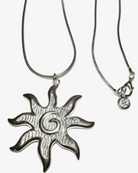 The Givenchy Vintage Sun Necklace in silver is a refined accessory ideal for summer elegance. Its versatile design allows it to be worn long, cascading below the chest, or doubled for a chic, shorter look around the neck. This timeless piece is a distinguished collectible that enhances any sophisticated wardrobe.