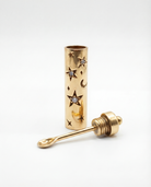 The Starry Sky Spoon Necklace features delicate moon and star engravings, with tiny white zirconia stones set into the star details for a subtle shimmer after dark. Inspired by ancient celestial symbols and long nights under open skies, this piece blends statement design with a hidden function inside.