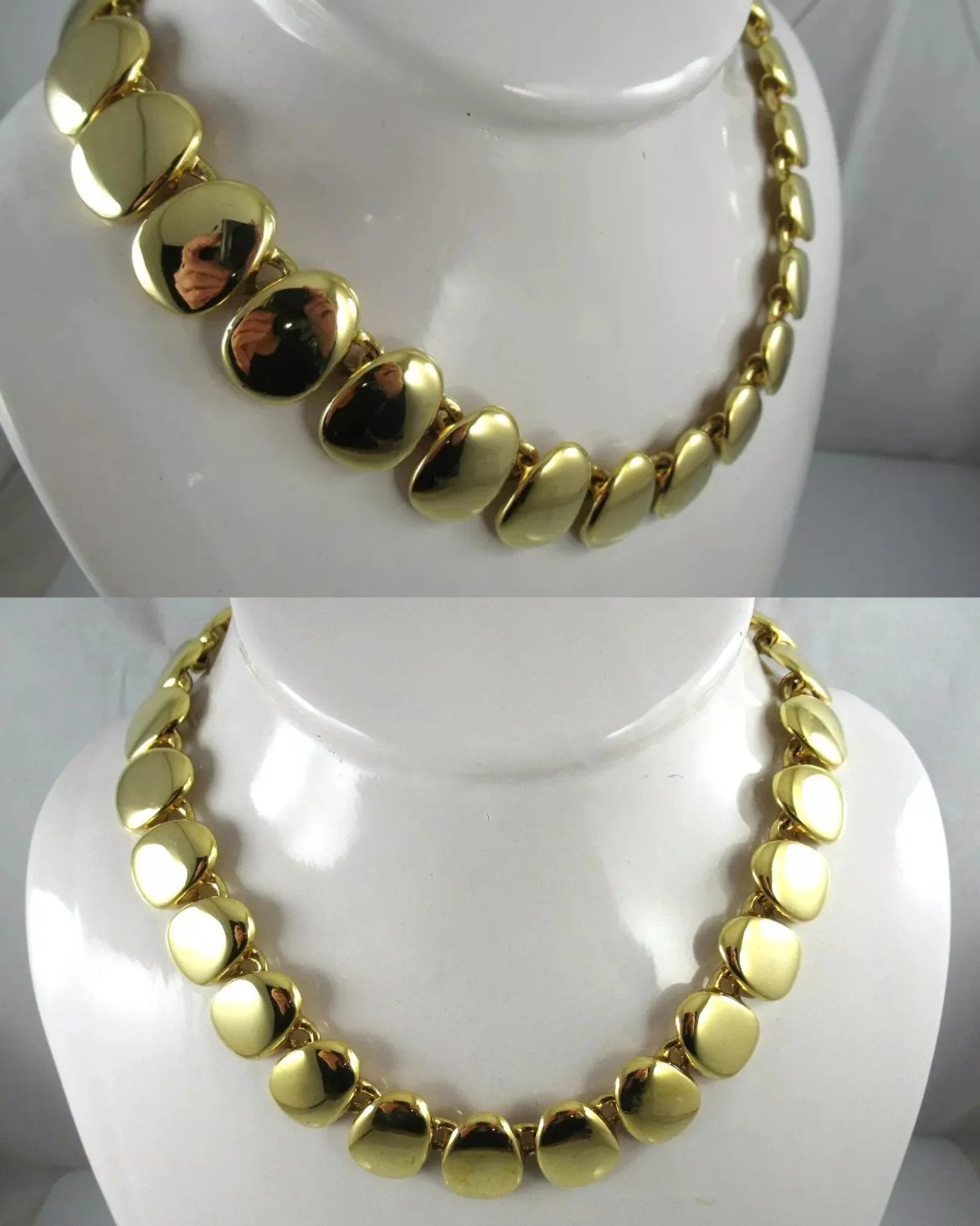 - Design: Oval/bean-shaped links forming a collar-style necklace